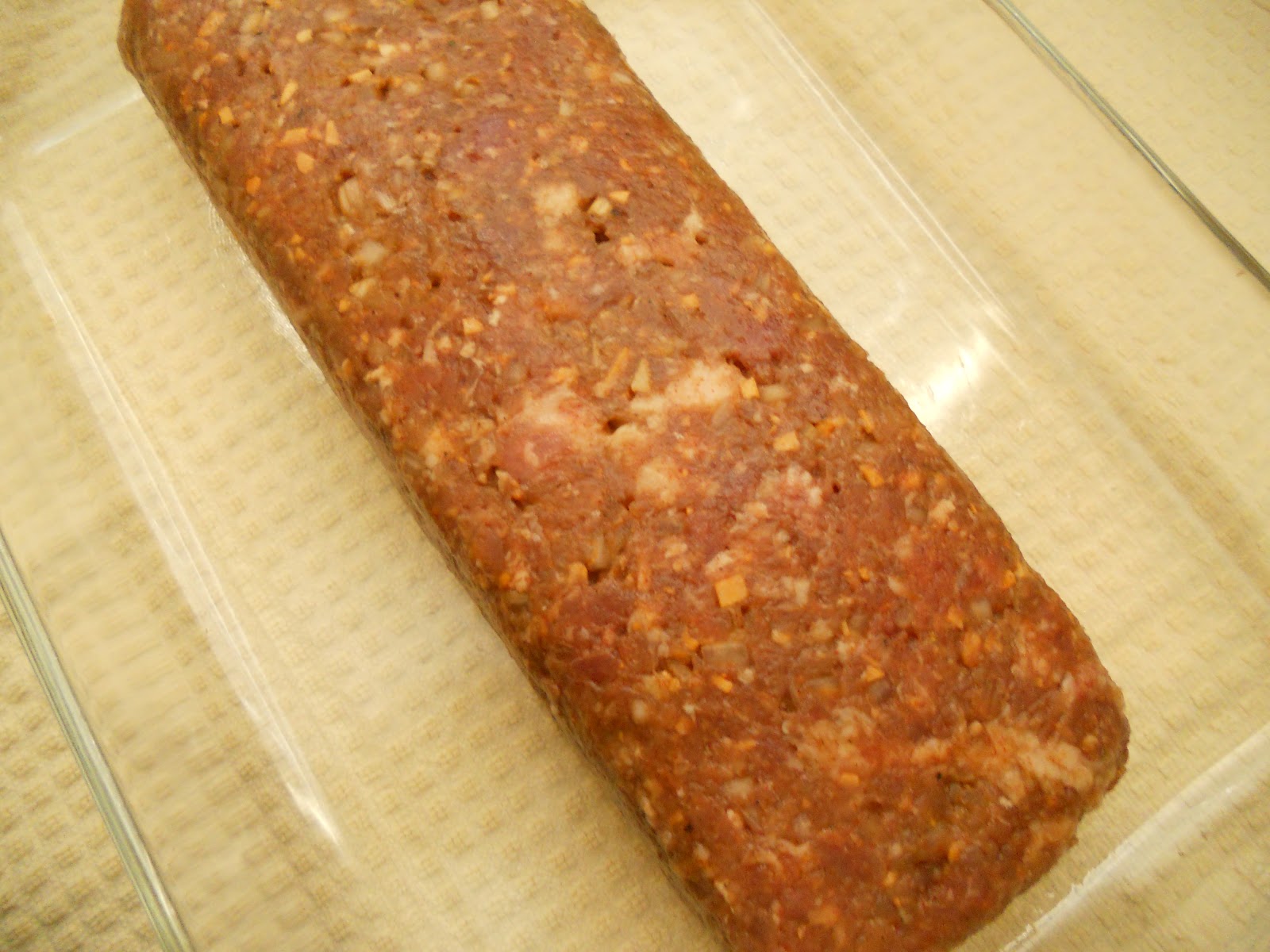 This is a "less-meat" meat loaf. Most meat loaf recipes that I read have no filling and are too meaty for me. So I had mine stuffed with vegetables and cheese, to reduce the amount of meat. We enjoyed this very much.