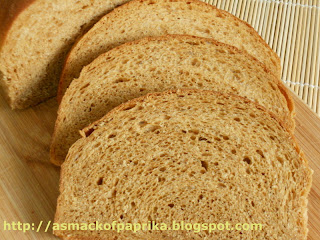 Since we have bread often this is one of the ways to get whole grain into our diet. This recipe is based on my Sour Cream Bread recipe. I replaced some ingredients and added new ones. The end result is a surprise, the texture is softer than the Sour Cream Bread. Other than the ingredients, the method of making this bread is the same as the Sour Cream Bread. (for the Sour Cream Bread click here) This recipe will be a regular in our menu.